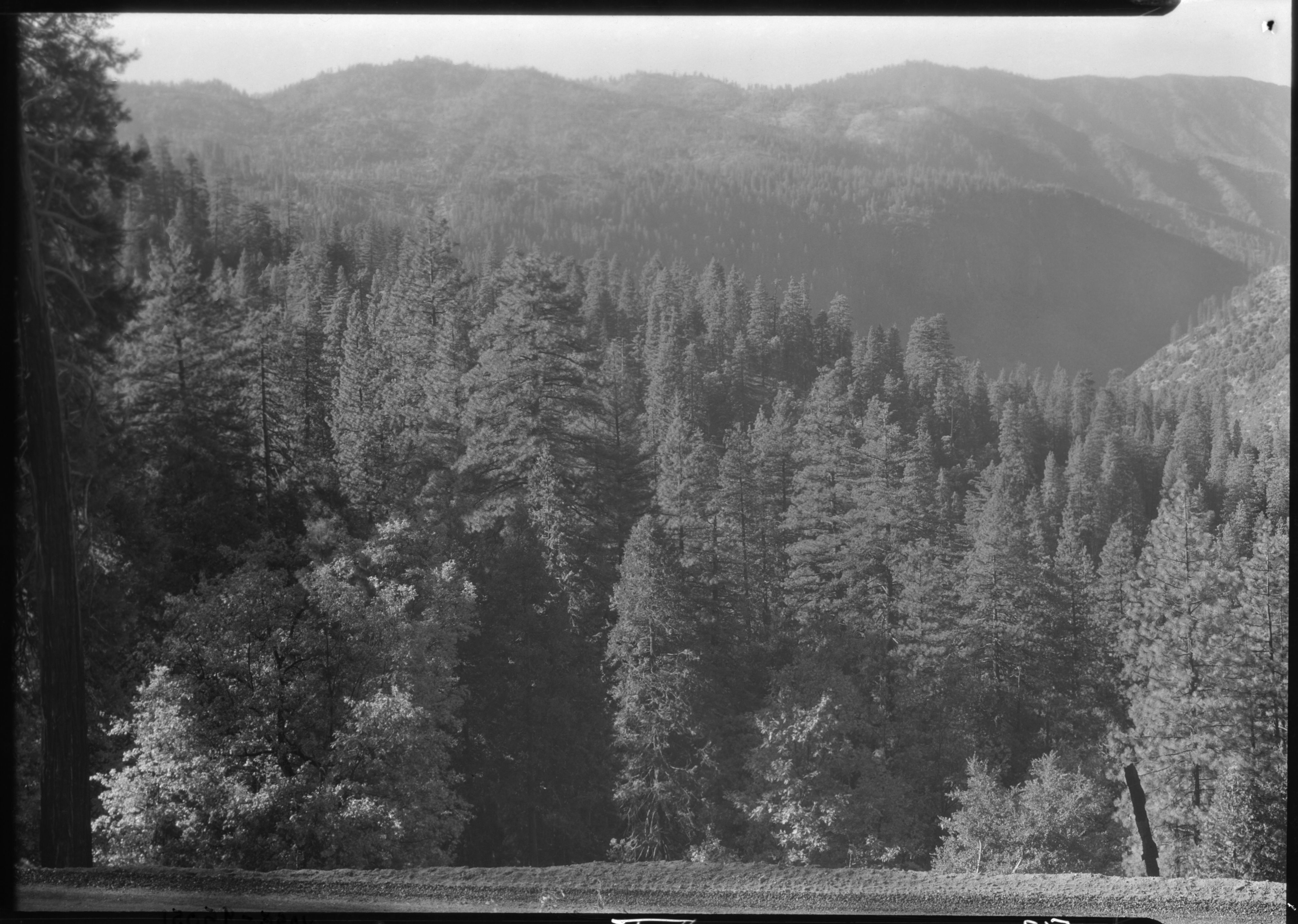 Burned area from incline across Merced River. Shows Macauley Road on left, Foresta Ridge, etc.