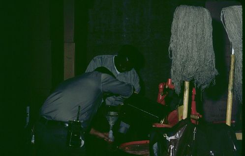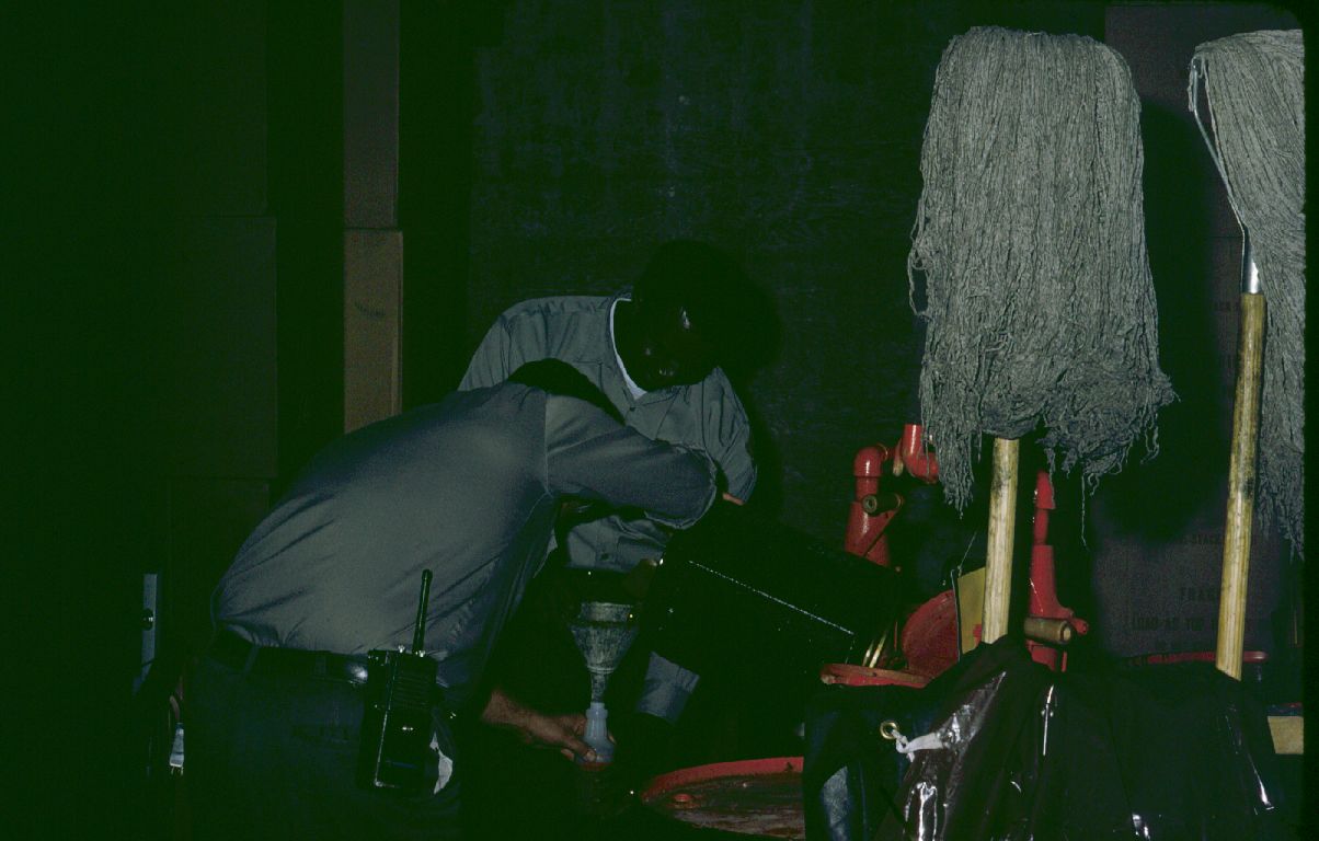 Paul Lingle and Victor Edwards in north mechanical room ; October 1977
