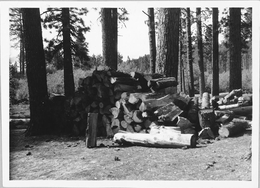 Administrative Collections: Album 5 (Emergency Conservation Works) -Wood Piled up from Cleanup of Summit Lake Campground