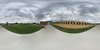 A 360-degree view of the sidewalk leading up to the Heritage Center. To the right is a wall featuring the 30 homesteaded states with cut outs showing the amount of homesteaded land in each state.