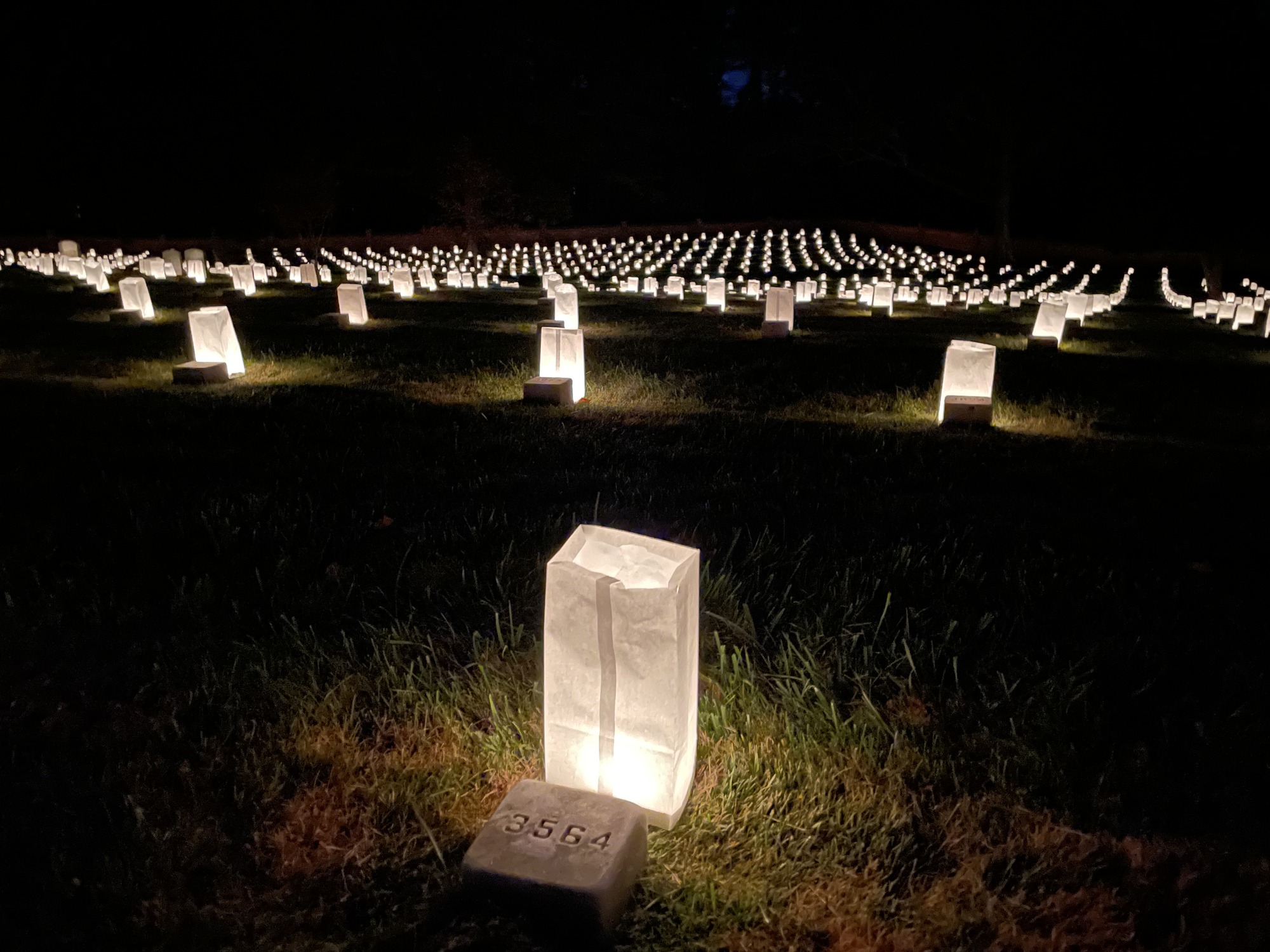 On the Saturday closest to Veterans Day a luminary is placed in front each of the over 6,000 headstones and grave markers.