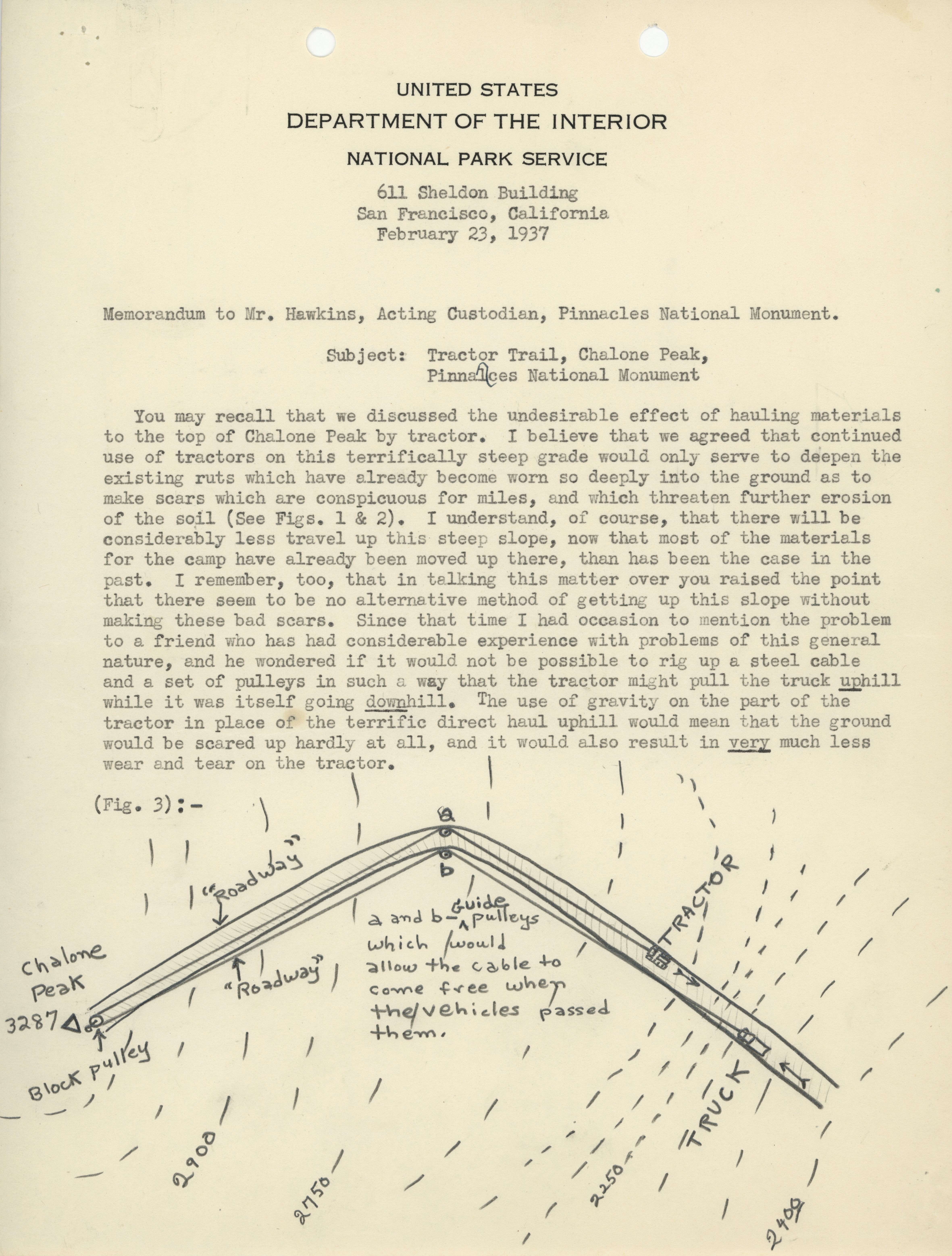 Original ID Lands, Buildings, Roads, and Trails: Tractor Trail 1937., 8.5 x 11 inches