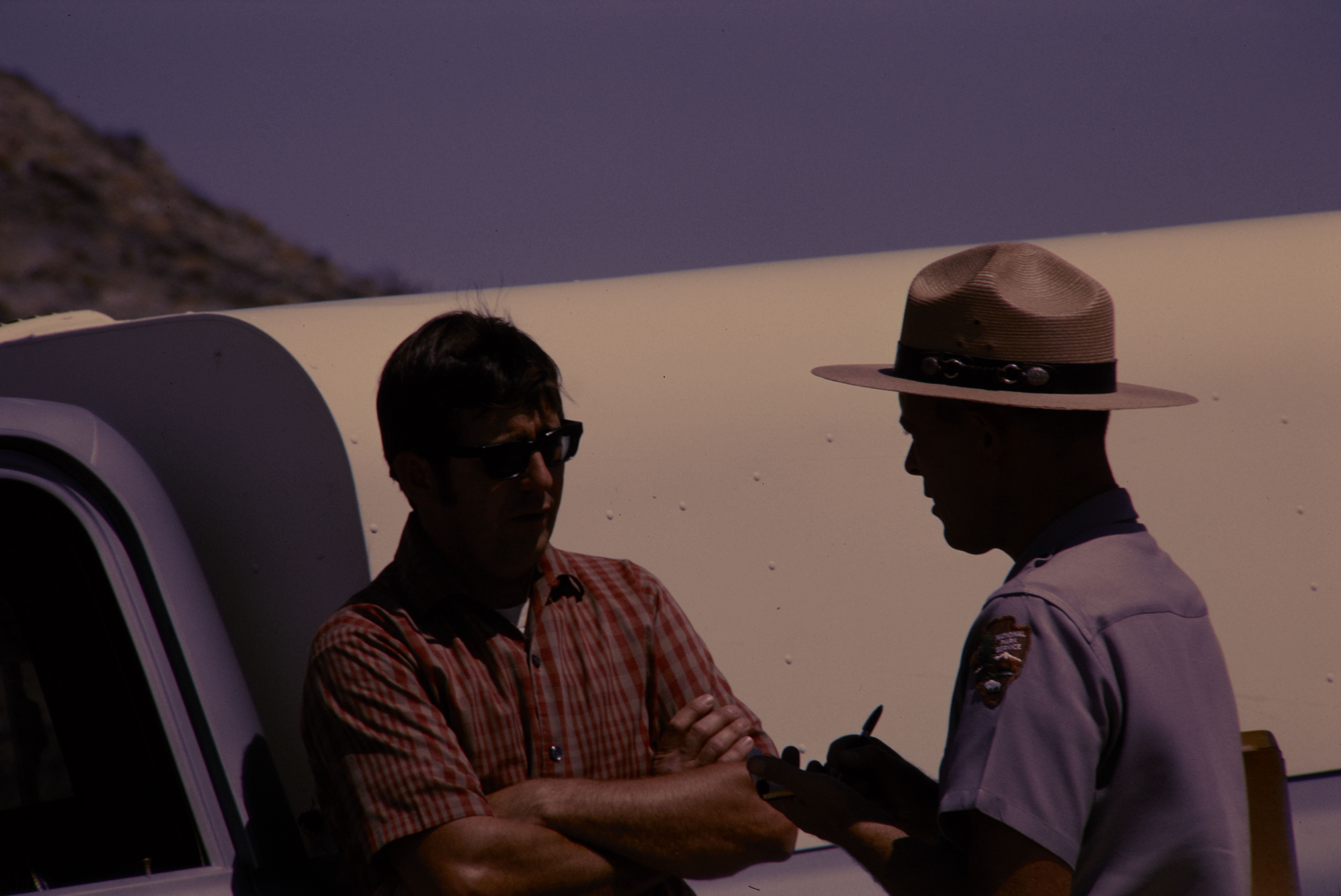 U.S. Park Police talking to a visitor in Death Valley National Park.