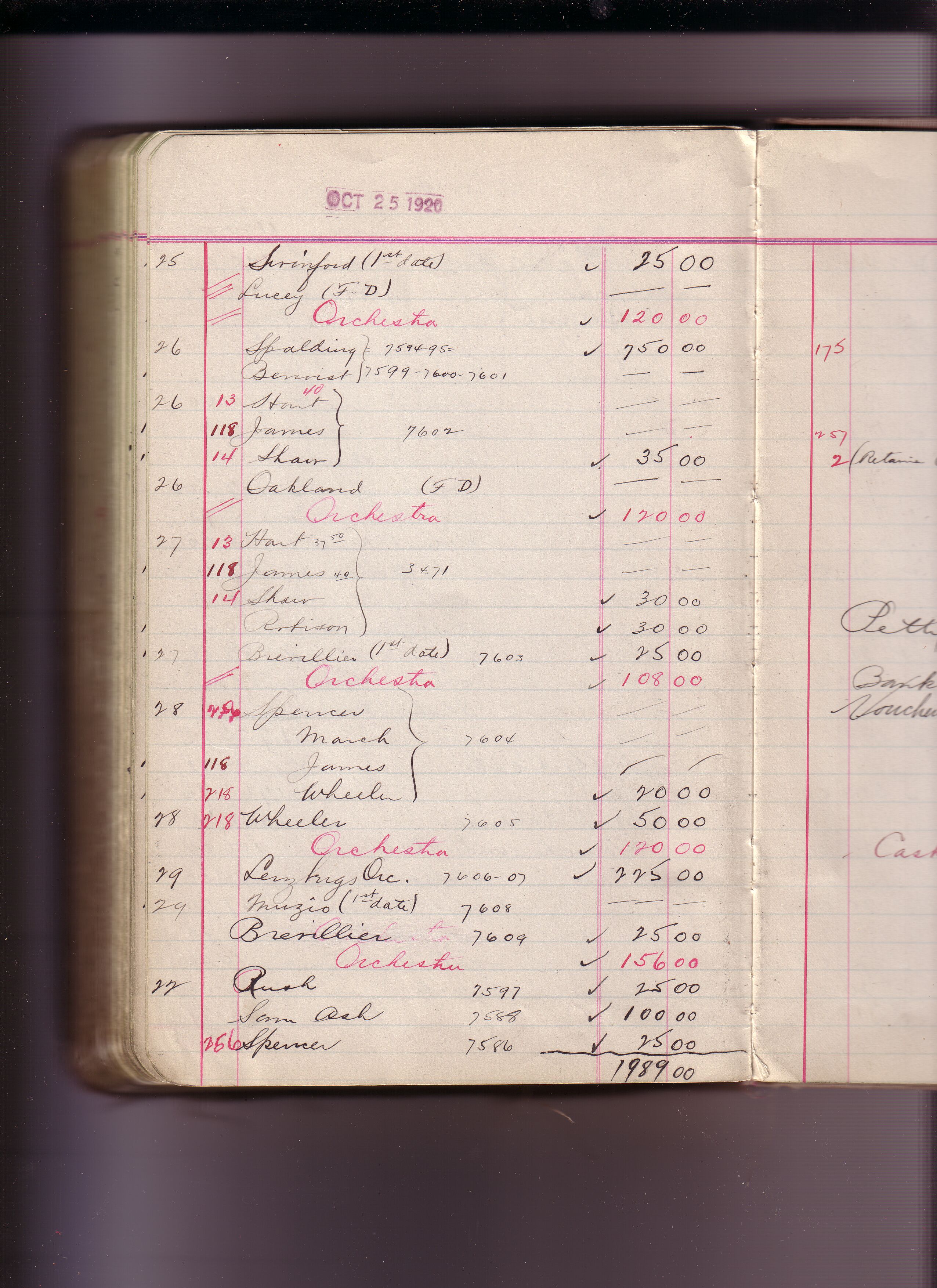 Thomas Edison's New York City Recording Studio Cash Book 16 (of 21), Image 284 (of 305).