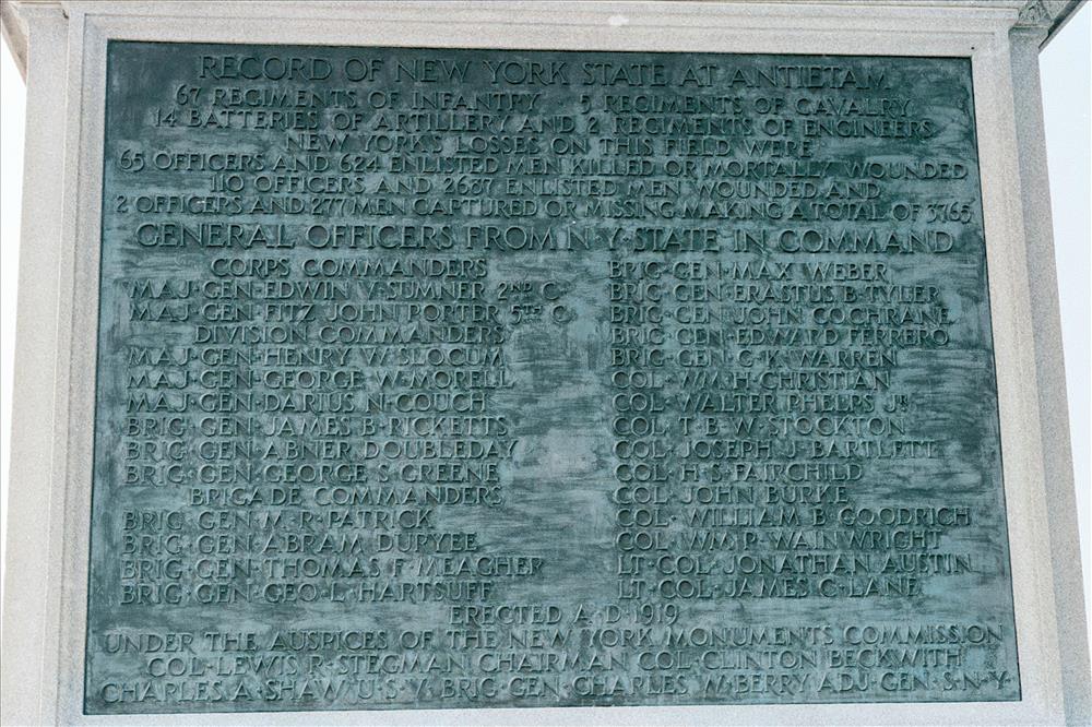 Commemorative monument erected to honor those who served & died during the Battle of Antietam on Sept 17, 1862. Dedicated to soldiers from NY who participated in the battle.
