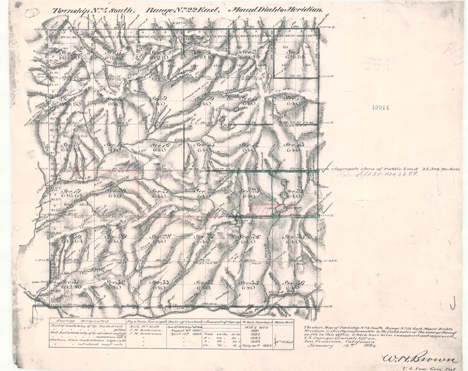 Map of Township No. 4 South, Range No. 22 East, Mount Diablo Meridian Survey