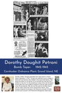 Dorothy "Dottie" Doughit graduated from high school in Grand Island, Nebraska, in 1942. Though she intended to go to college, a friend told her that she was needed in the local bomb factory. She asked her father for his advice, & he reminded her that she had 2 brothers in the war. For the remaining 3 years of the war, she taped bombs after they were stuffed & capped so that the caps wouldn't come off prematurely. After the war she came to the Bay Area to visit her sister where she met & married Nino Petroni. Nino became a teacher & principal in the Richmond schools, & Dottie ran the lunch counter in the Richmond Montgomery Ward store.