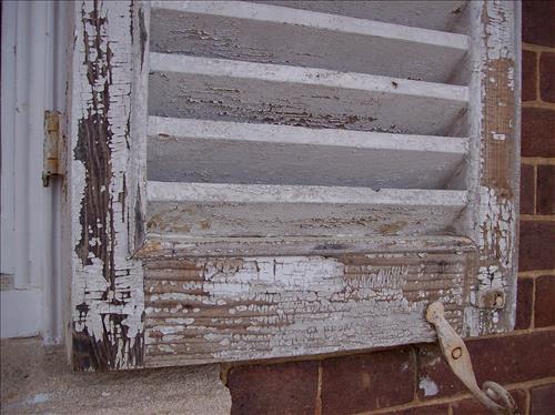 The wooden shutters on the Officer's Quarters are in need of repairs including abatement of any lead-based paint, woodwork repairs, priming and painting. In addition, some of the hinges are damaged.
