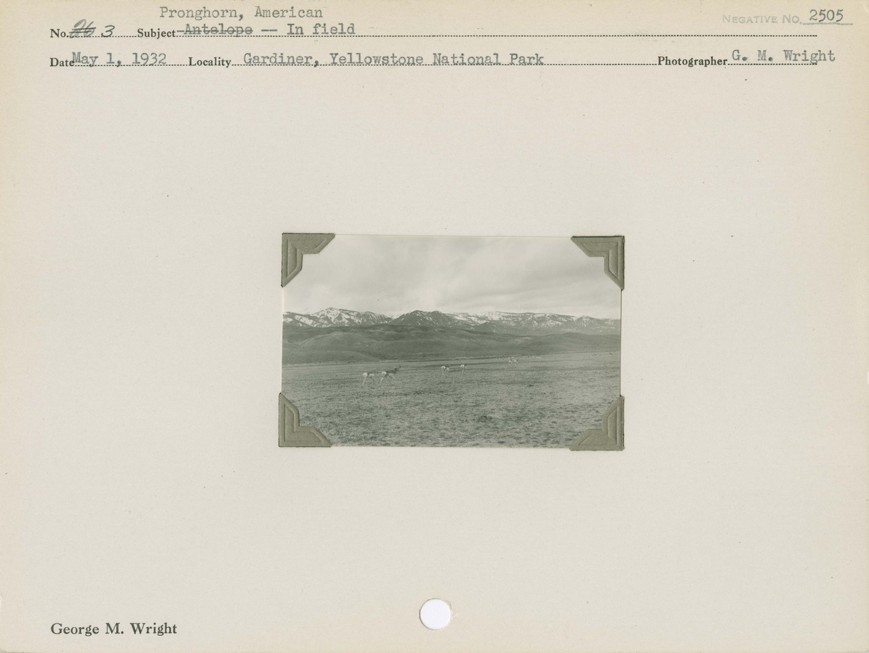 Antelope [American Pronghorn] -- In field.. Locality: Gardiner, Yellowstone National Park. Negative #: 2505
