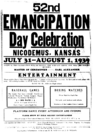Poster announcing the 52nd Emancipation Day Celebration at Nicodemus, 1939