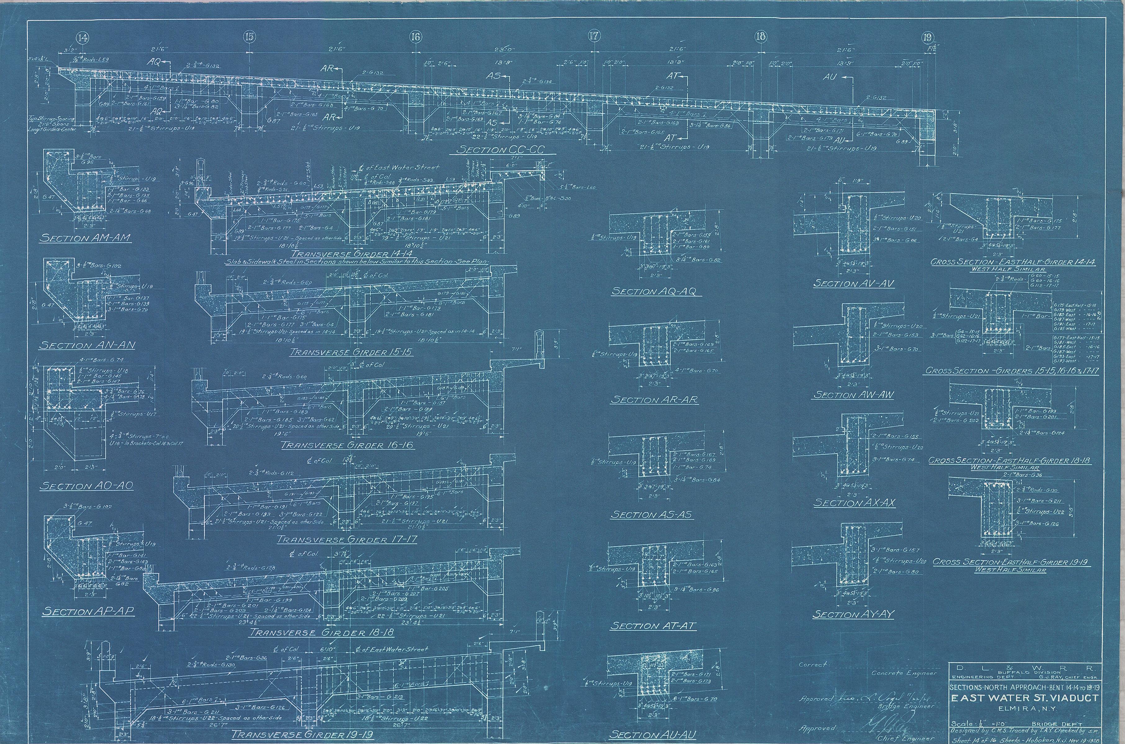 East Water Street Viaduct--Sections--North approach, bents 14-14 to 19-19--Elmira, NY [1928.11.19] Sheet no. 14 of 16
