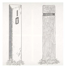 Two-part illustration of signs and markers seen along the Skyline Drive. Shown are (left) a milepost marker and (right) a trail marker.