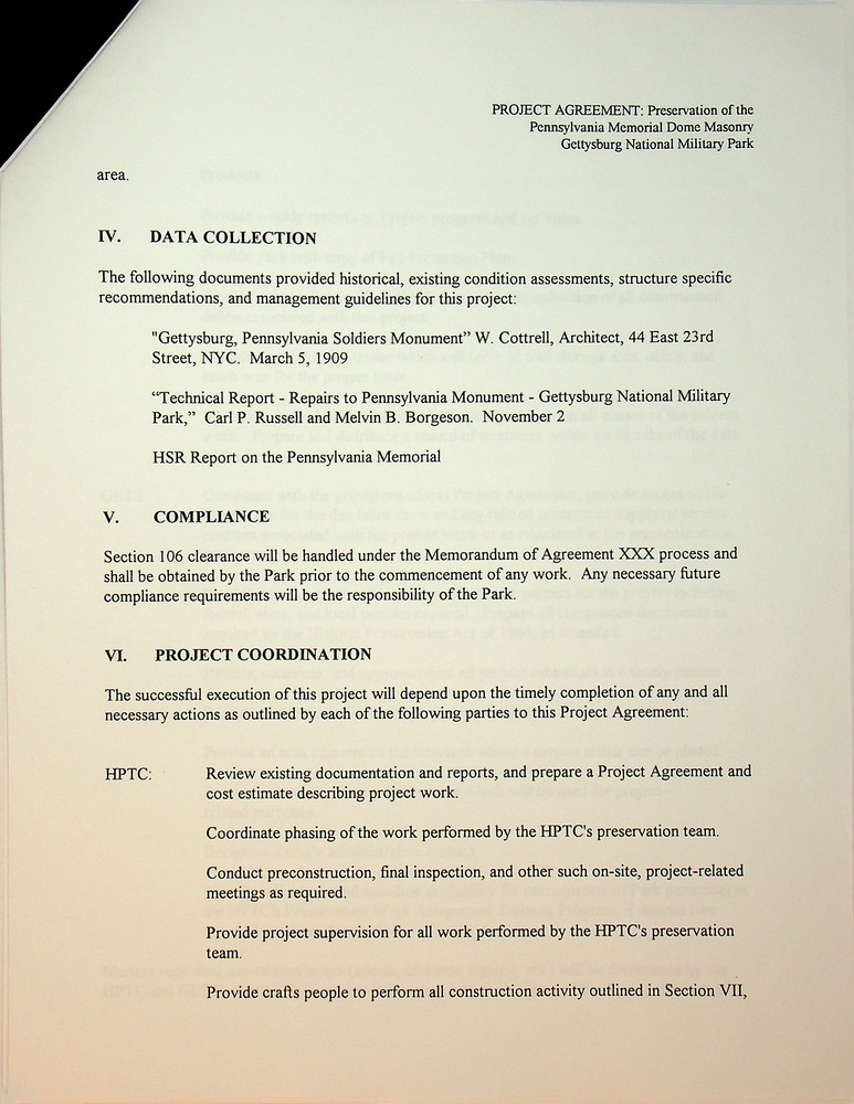 Project Agreement: Preservation of the Pennsylvania Memorial Dome Masonry