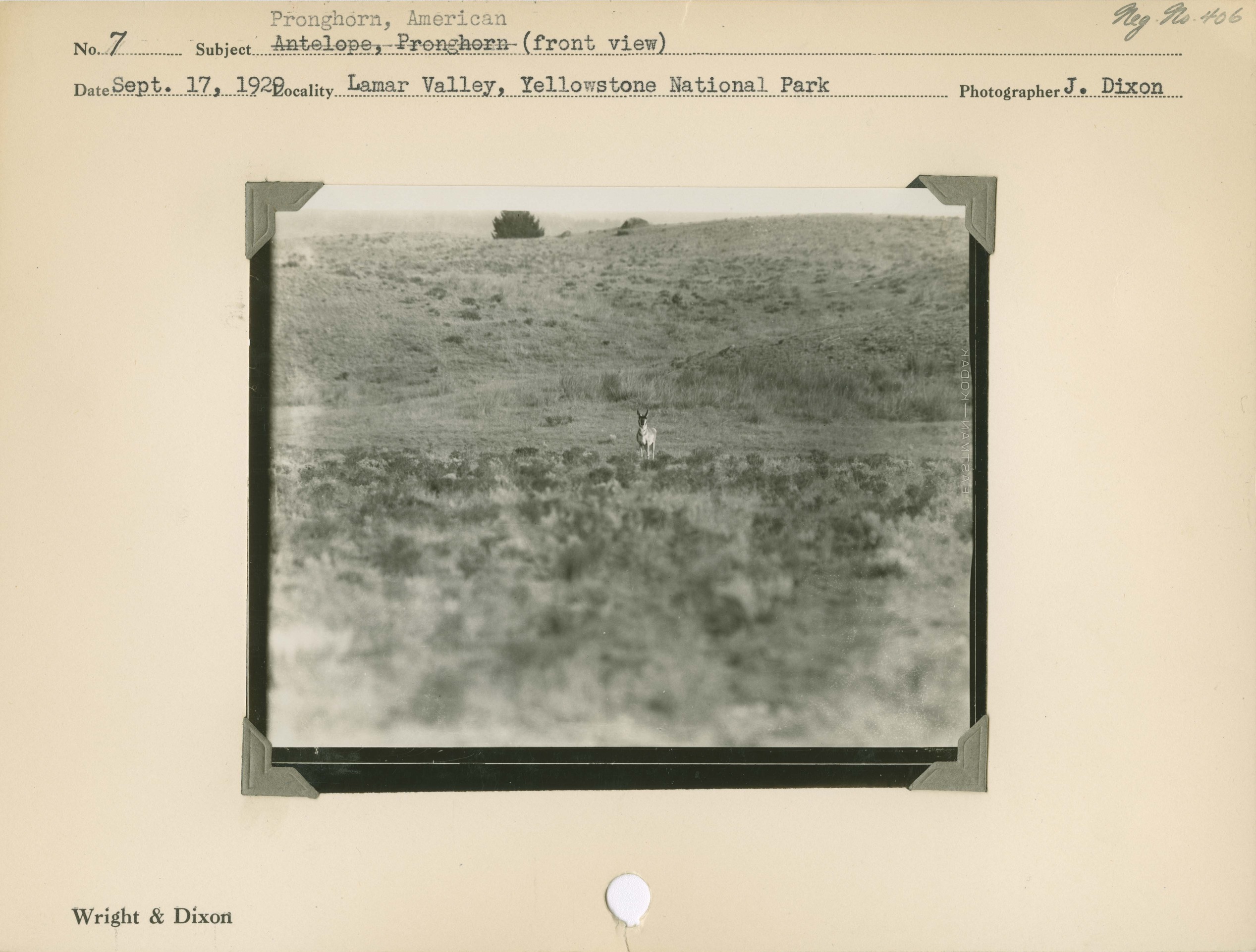 Pronghorn, American (front view). Locality: Lamar Valley, Yellowstone National Park. Negative #: 406