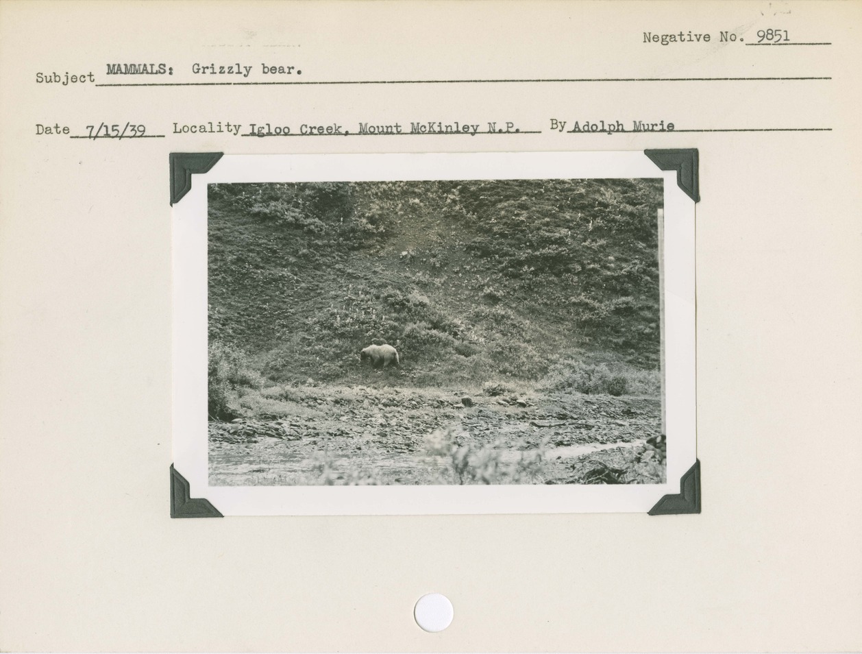 Mammals: Grizzly bear. Locality: Igloo Creek, Mount McKinley [Denali] National Park. Negative #: 9851.