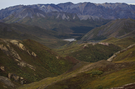 A view from high up on Polychrome Mountain. The Denali Park Road climbs part-way up the side of this mountain, around roughly Mile 44 to 50.