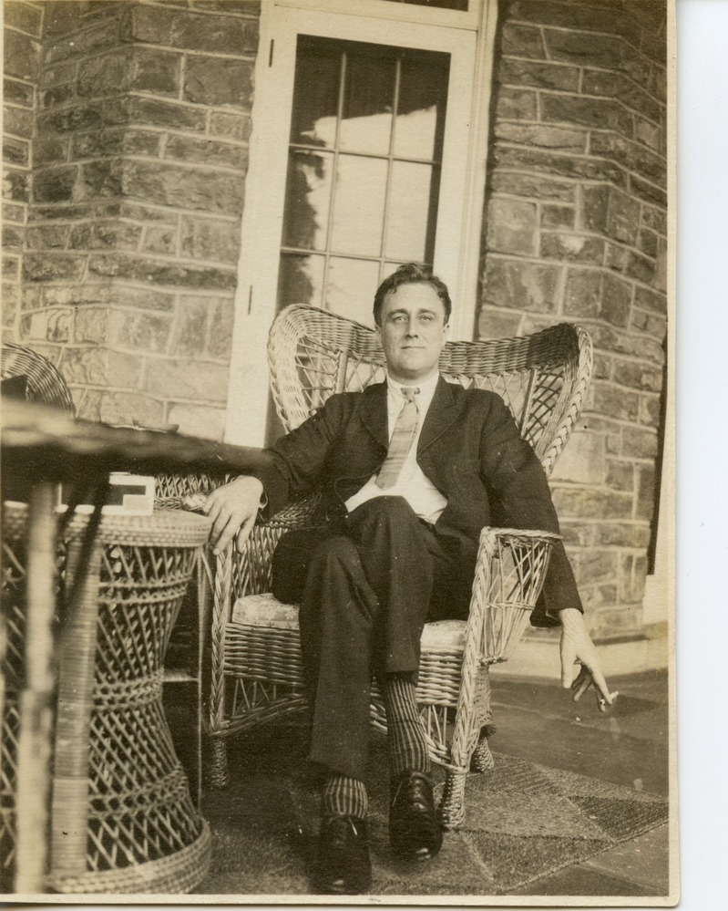 Franklin Roosevelt enjoying the south porch at Springwood in Hyde Park, NY.