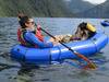 SCA intern paddles her inflatable raft on Delight Lake in McCarty Fiord (Fjord) during an Elodeae Survey
