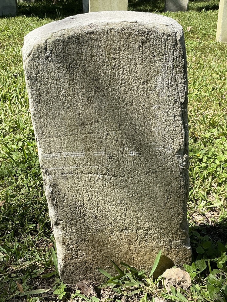 Back of historic upright marble headstone with recessed shield with recessed lettering face.