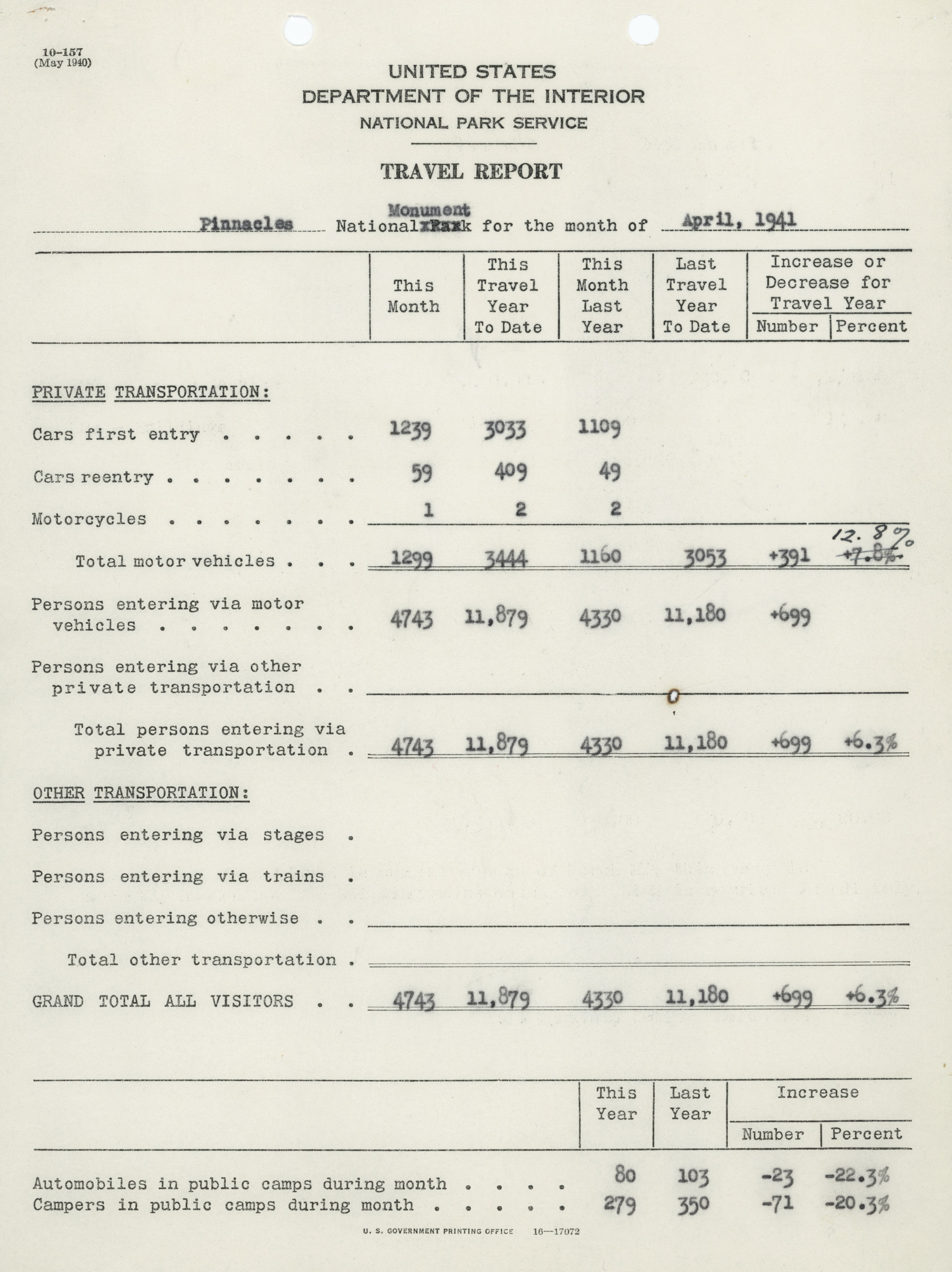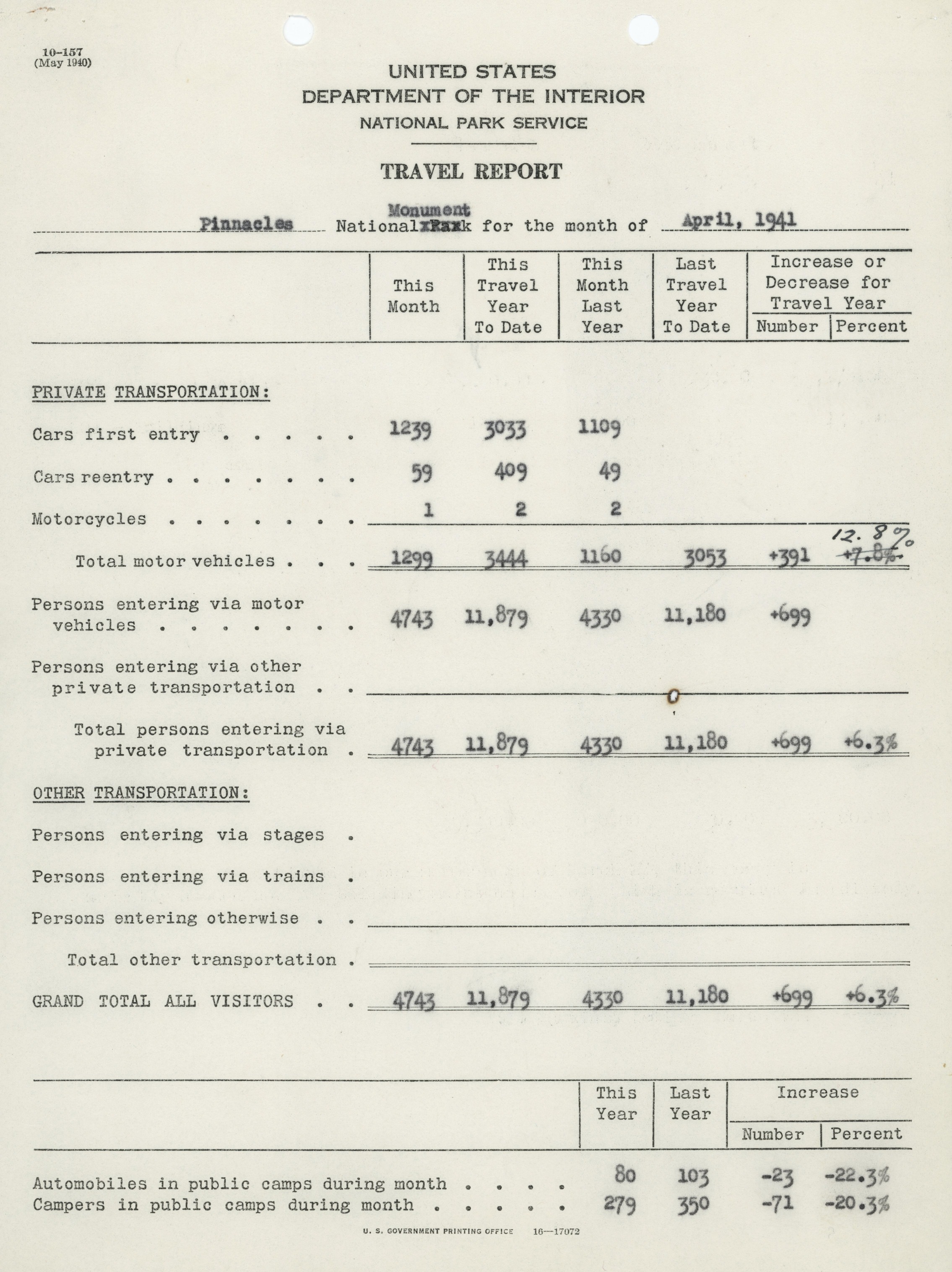 Original ID Reports (general) - Monthly: Supt's Monthly Report 1941., 8.5 x 11 inches