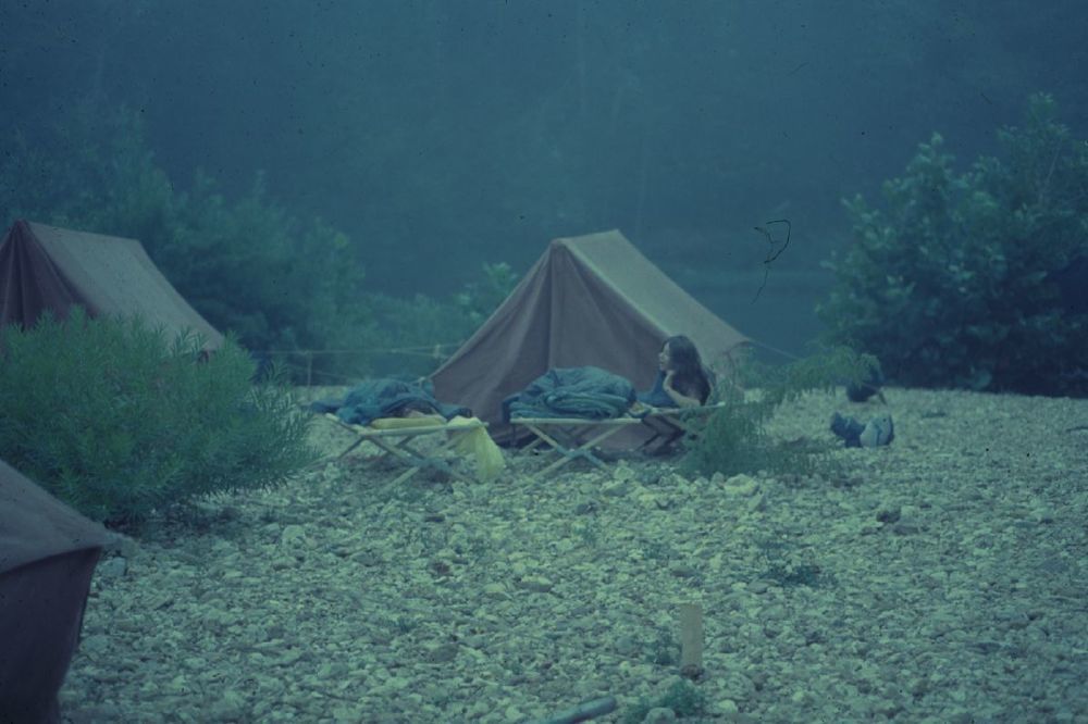 Campsite along the river. ; August 1974