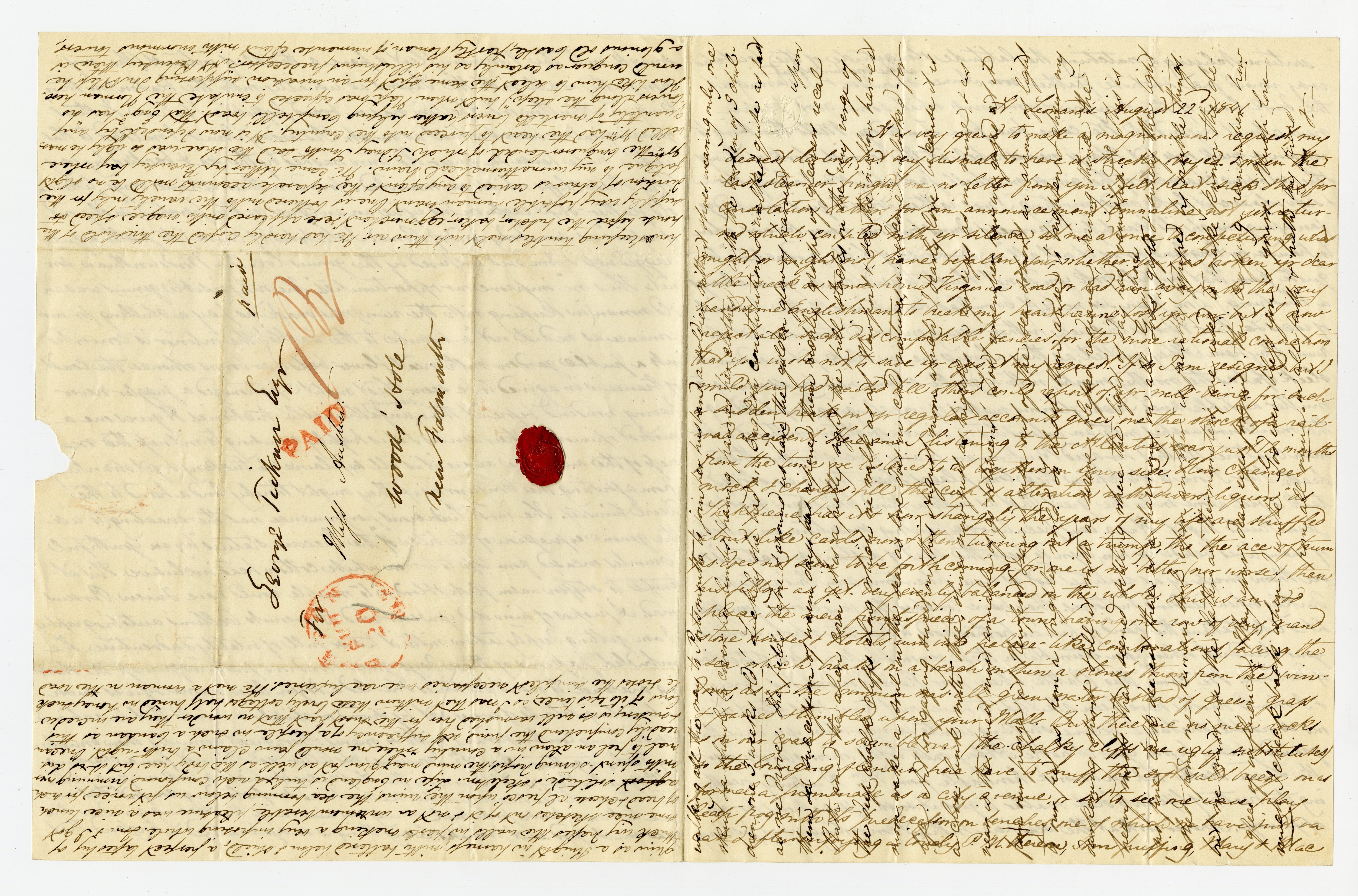 ADDRESSED: GEORGE TICKNOR ESQ / MISS AUSTIN. / WOOD’S HOLE / NEAR FALMOUTH [ALL BUT “MISS AUSTIN” IN A HEAVIER HAND OR PEN]