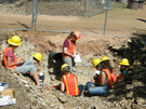 In the construction trench near the temporary visitor center, taking notes on how to do a stratigraphy column with Florissant Fossil Beds National Monument, Colorado, GIPs Cassi Knight, Ashley Ferguson, Bret, Kelly Hattori, Brenda, and Lindsay Walker.