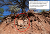 Slab-lined cist cut in half due to location in eroding cut bank. This impact occurs in drainages and arroyos in talus and riparian environments.
