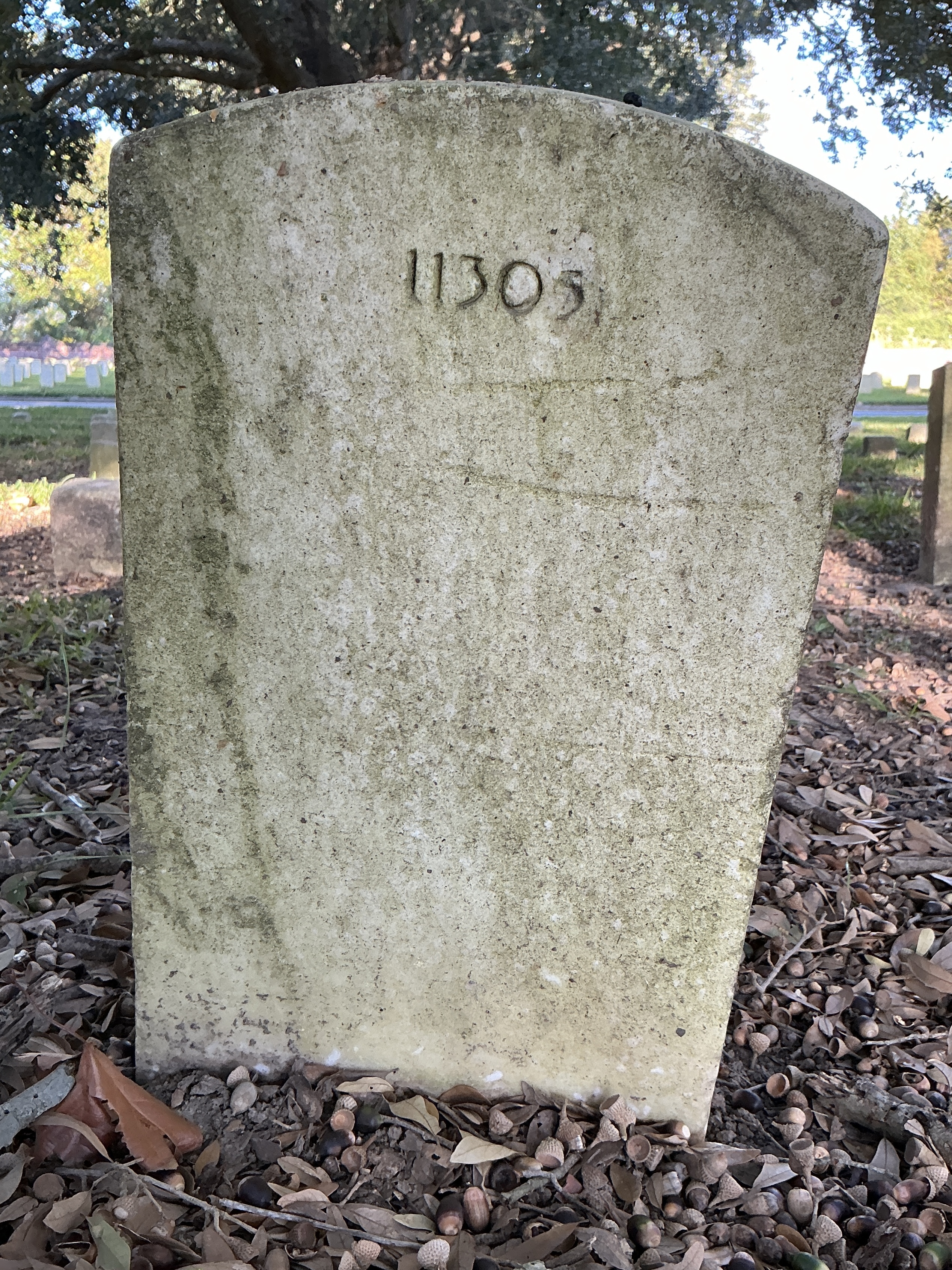 Headstone at Chalmette National Cemetery. Grave ID: 11305. Located at Section 141, Row 6, Site Number 10. Photo taken as part of the 2024 condition assessment and inventory.