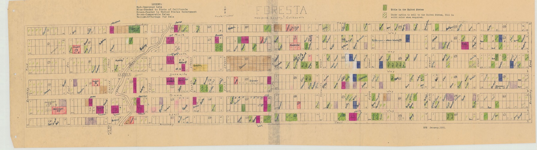 Map of Foresta subdivision with lots numbered and deeds and titles colored