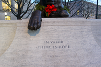 Marble wall inscription. Quote: "In valor there is hope." Tacitus