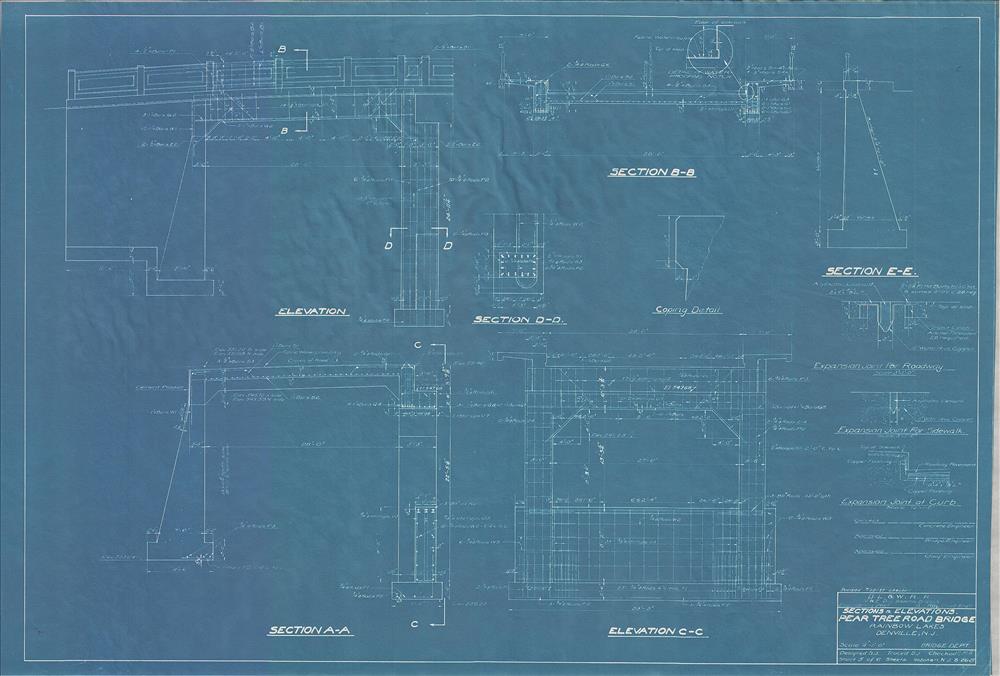 Pear Tree Road Bridge--Section and elevations--Rainbow Lakes, Denville, NJ [1927.08.26] Sheet no. 5 of 6