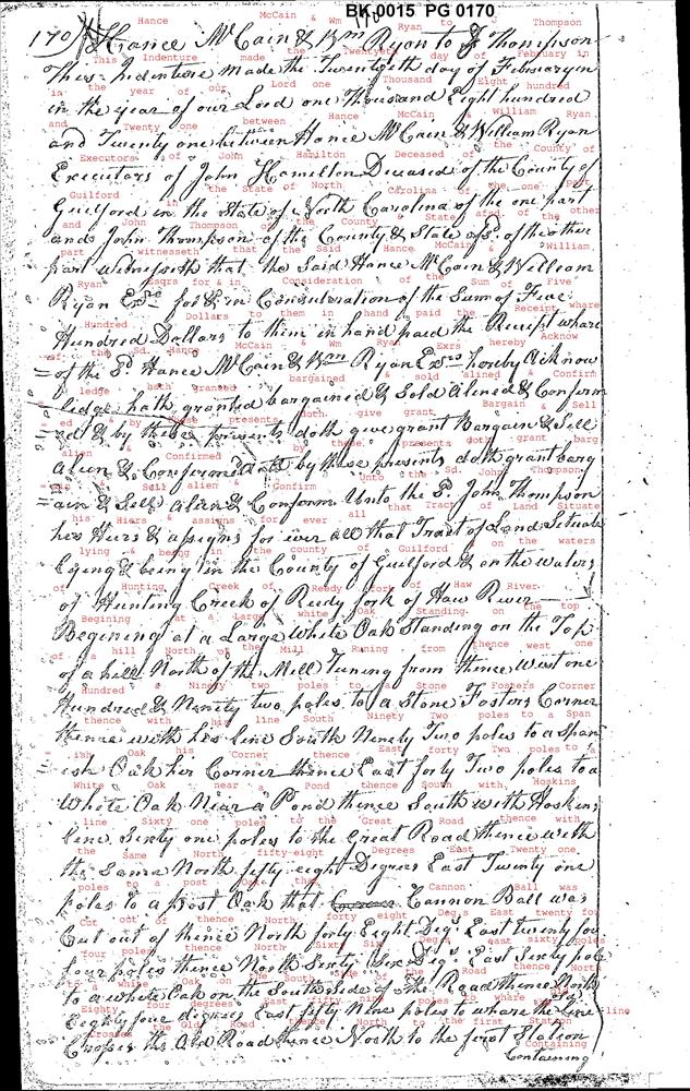 Document related to historic land ownership in the vicinity Guilford Courthouse.