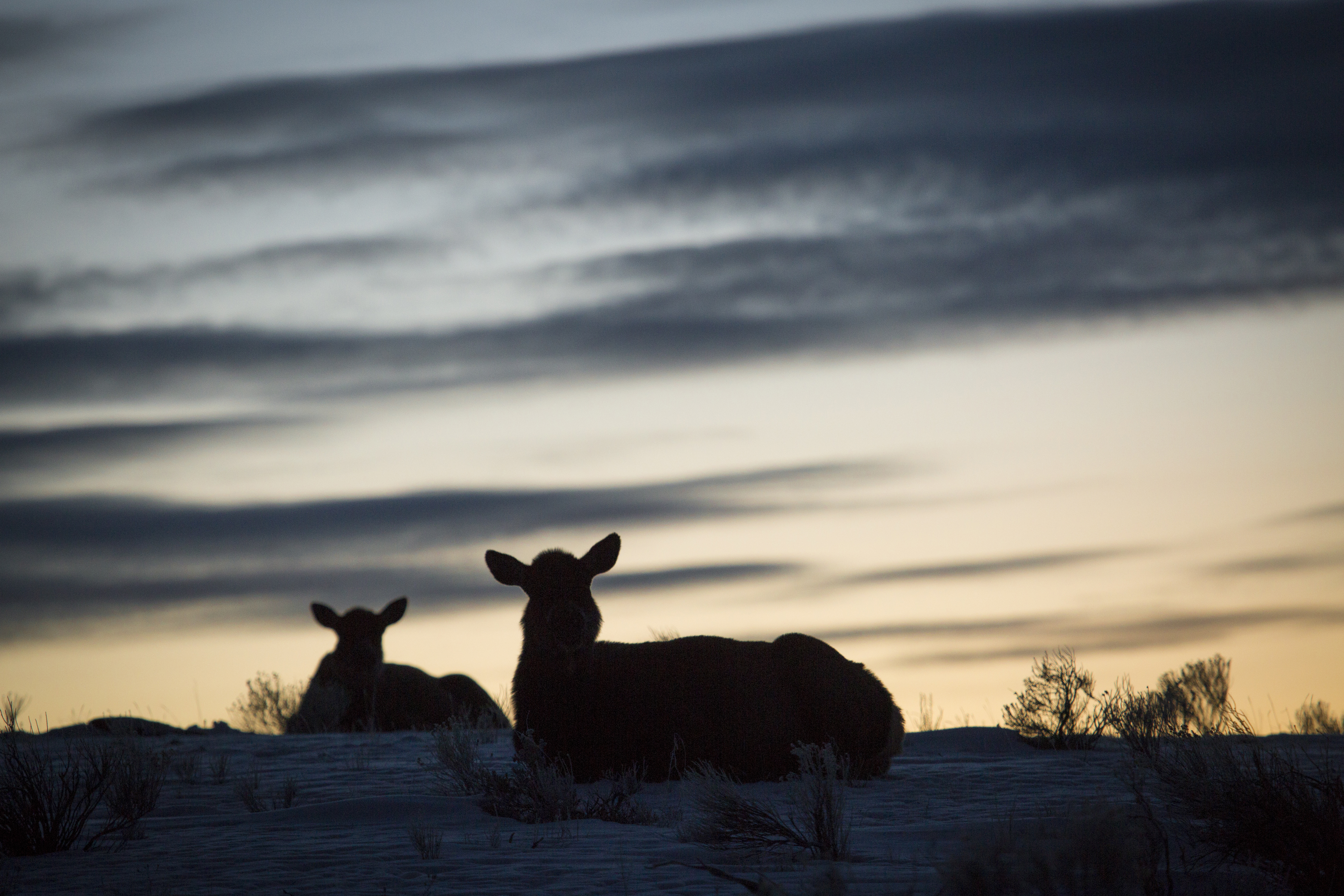 Cow elk and sunrise;