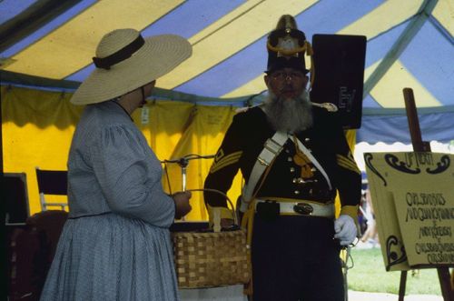 Man in military costume and woman in costume. ; June 1988