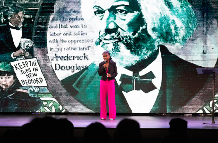 Oratorical Contest winner Precious Rose Foreman performs at the 2023 Frederick Douglass Birthday Celebration