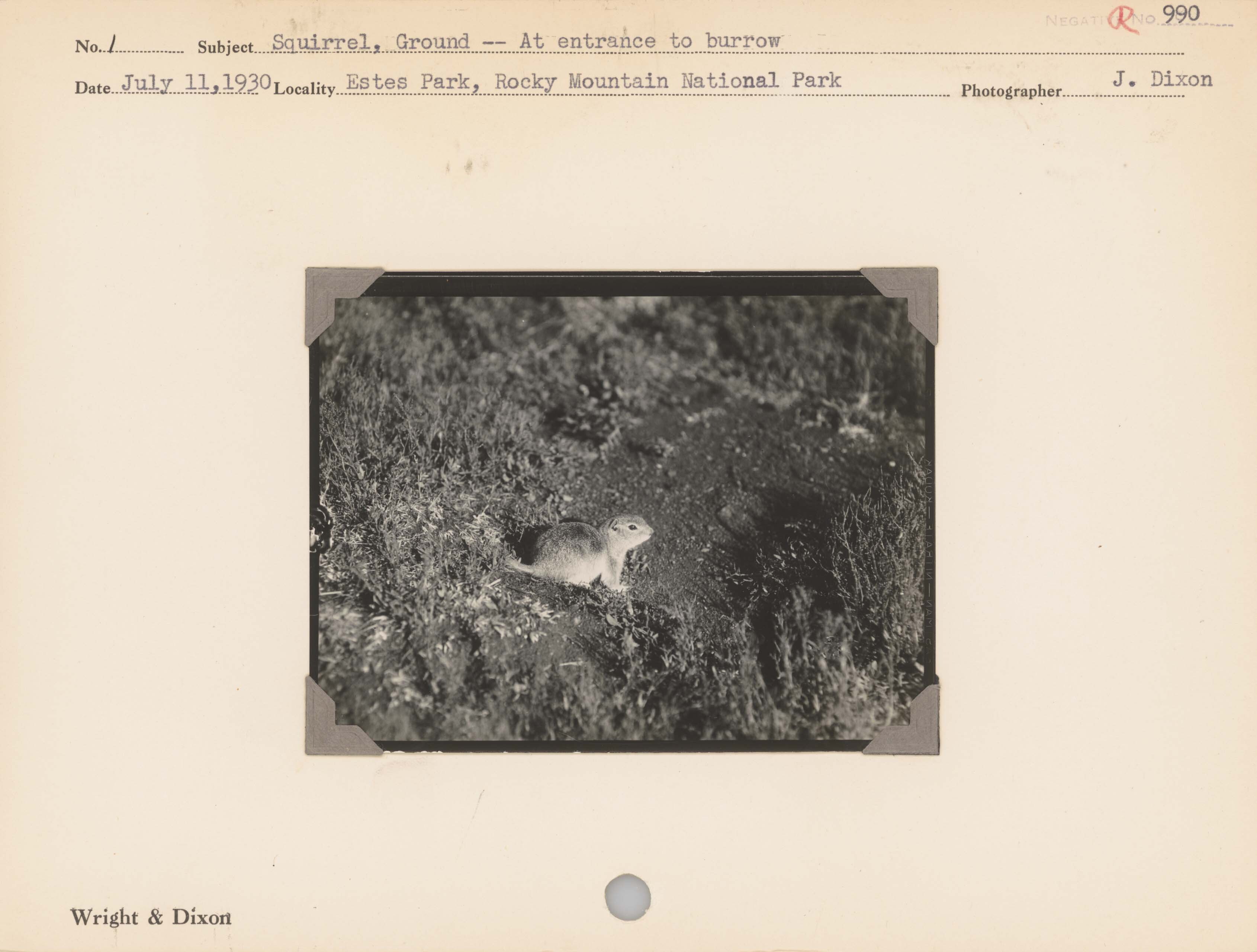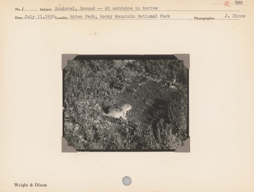 Squirrel, Ground--At entrance to burrow. Locality: Estes Park, Rocky Mountain National Park. Negative #: 990