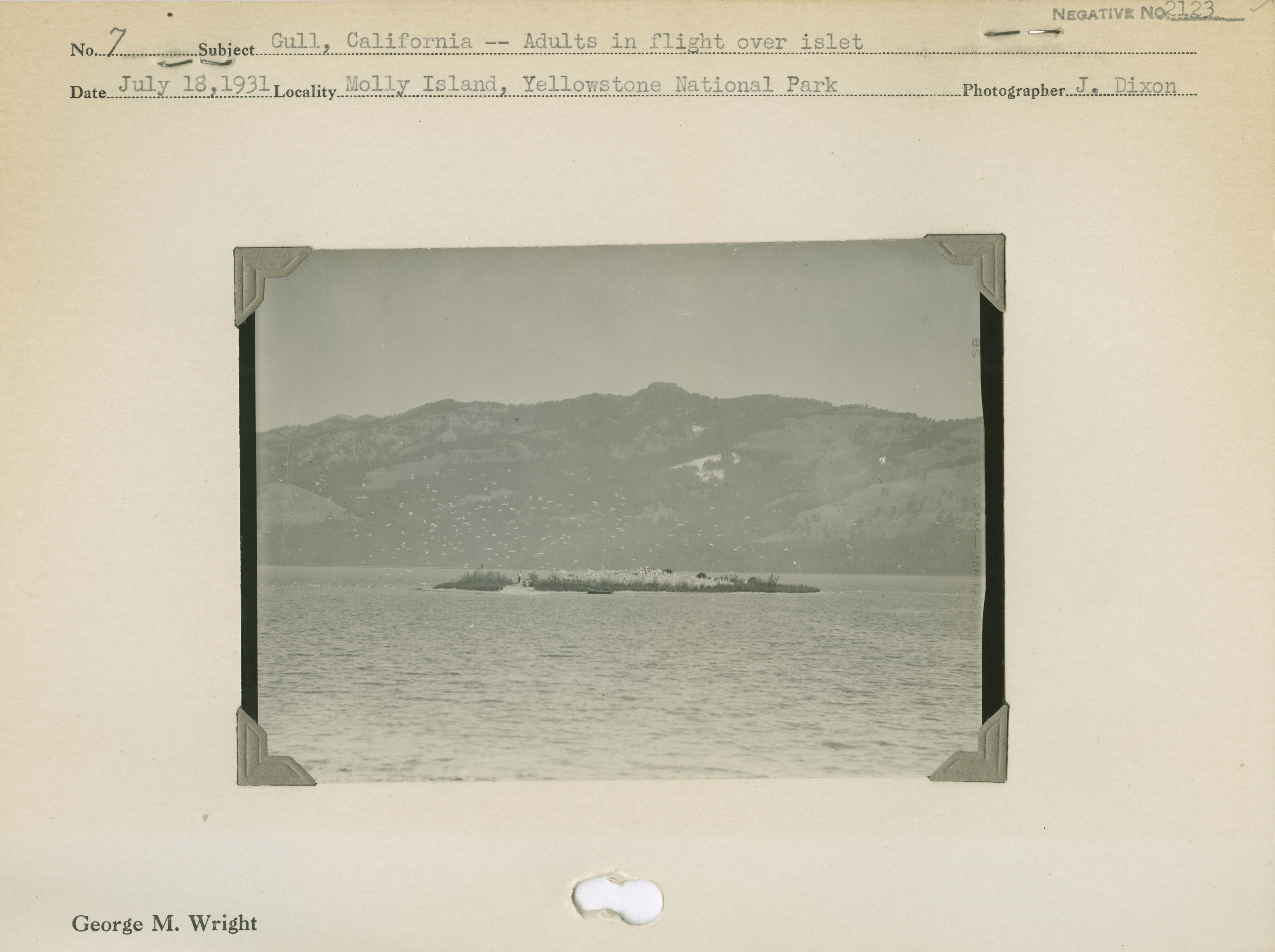 Gull, California -- Adults in flight over islet. Locality: Molly Island, Yellowstone National Park. Negative #: 2123