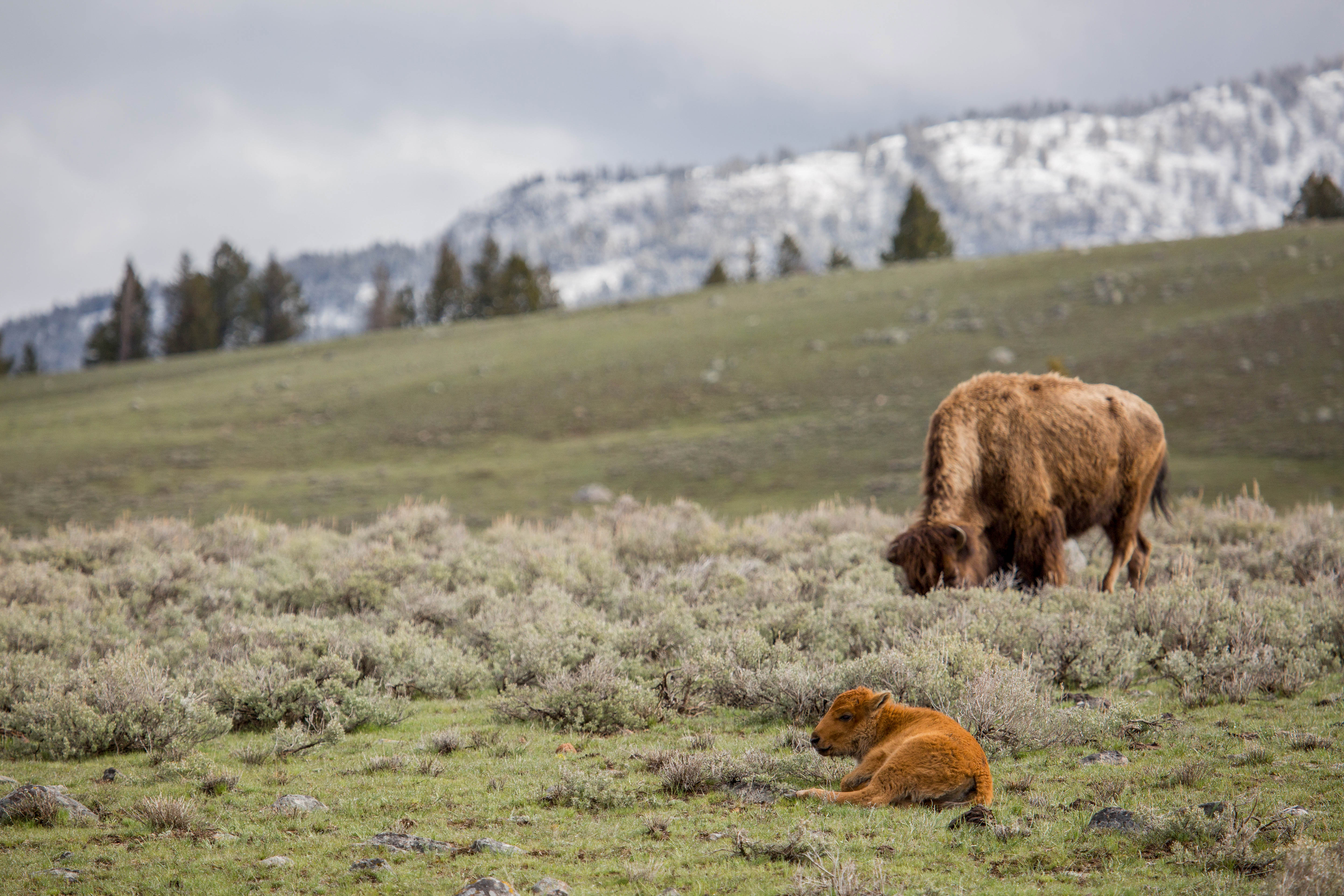 Cow bison and calf;