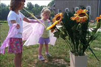 Junior Ranger, Jr. families participate in creative play with a park ranger at Sarah's Vineyard. This activity is part of the Butterfly's Breakfast program. Children ages 4-6 dress up as butterflies sipping nectar from flowers and emerging from coccoons. They also examine mealworms. || CVNP offers a variety of Junior Ranger programs to families and groups during the summer, and a limited menu to families throughout the year. In 2007 we had a Parks as Classrooms grant to develop pilot programs on working farms on park property. This program, Butterfly's Breaksfast, explores the lives of insects and their roles on farms.