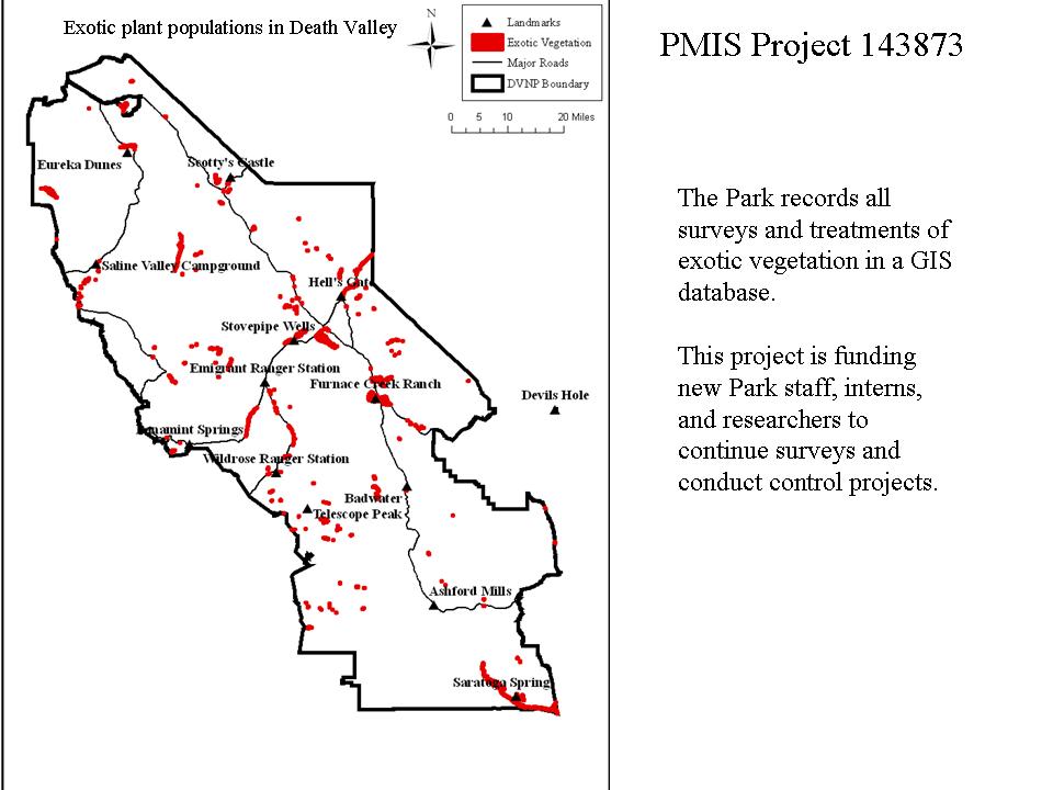 Park-wide map of exotic vegetation in Death Valley National Park, including all surveyed and treated areas, August, 2008.
