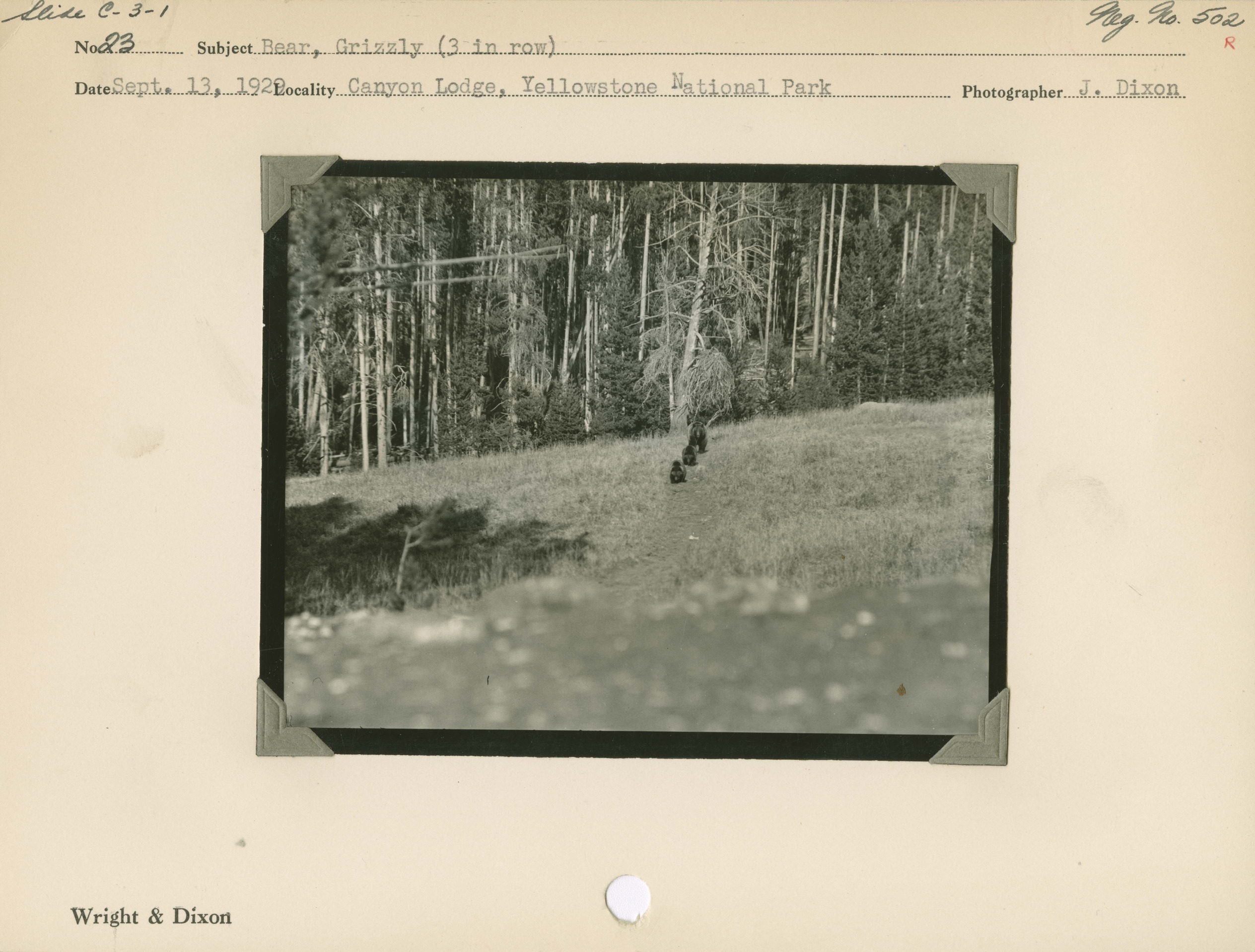 Bear, Grizzly (3 in row). Locality: Lake Lodge, Yellowstone National Park. Negative #: 502