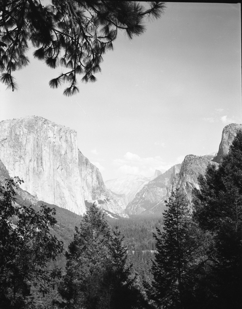 View of meadow, Royal Arches, North Dome, Cloud's Rest, and Half Dome.