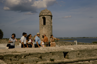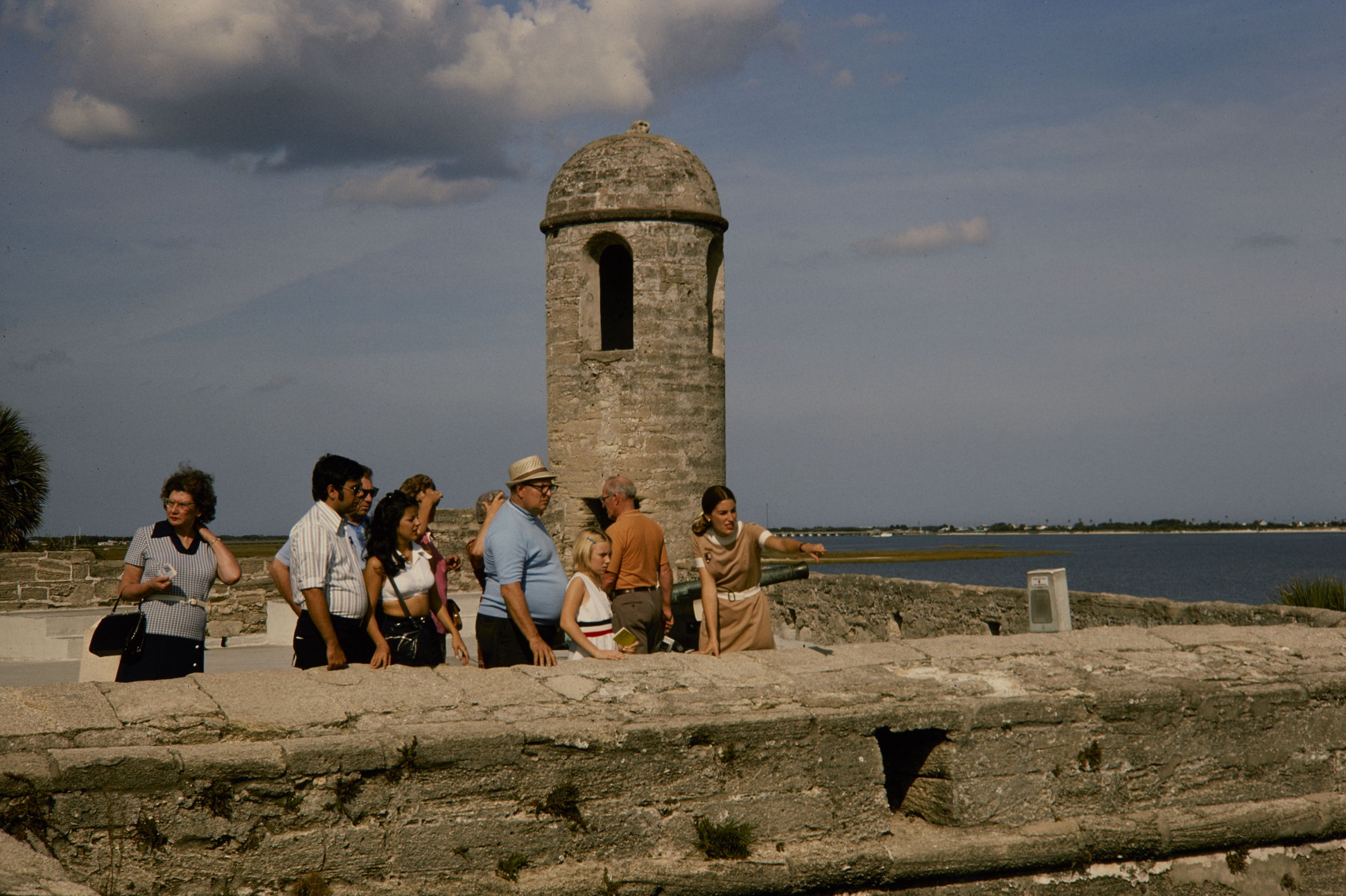 NPS employee talking to visitors at Castillo de San Marcos National Monument.