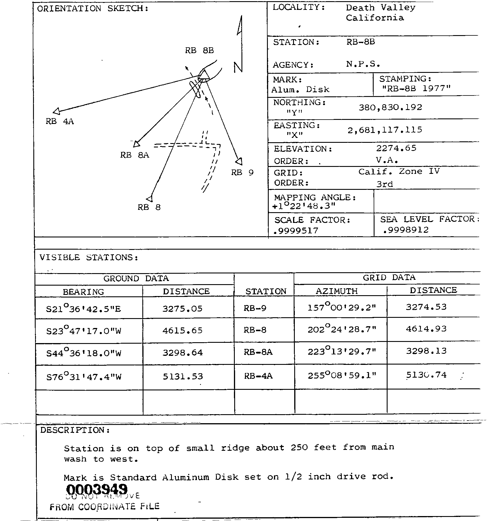 Survey monument record sheet, Sketch number: 00003949