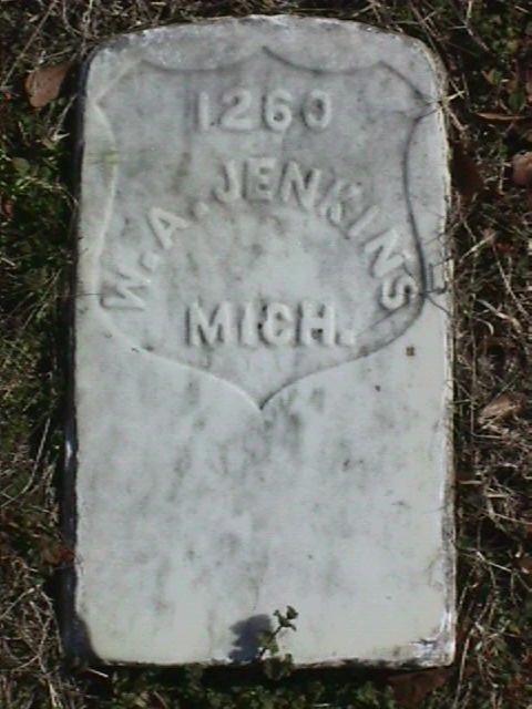 Headstone for W.A. Jenkins in Poplar Grove National Cemetery