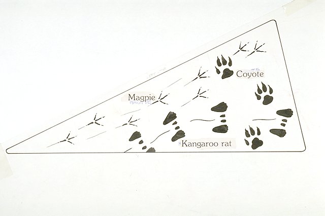 Tracks of fauna common to the Great Sand Dunes: magpie, coyote, Kangaroo rat.