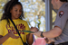 Young teen in yellow "Panther Pride" t-shirt receiving award during Plains Peanut Postcard Contest awards ceremony.