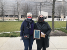 Photographed in front of the Eisenhower memorial, National Park Service staff present a representative of the Dwight D. Eisenhower Commission with a plaque recognizing the organization as 2020 Partner of the year.