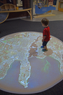 A child marvels at the map of 19th century New Bedford projected onto the floor of the park's new MakerSpace.
